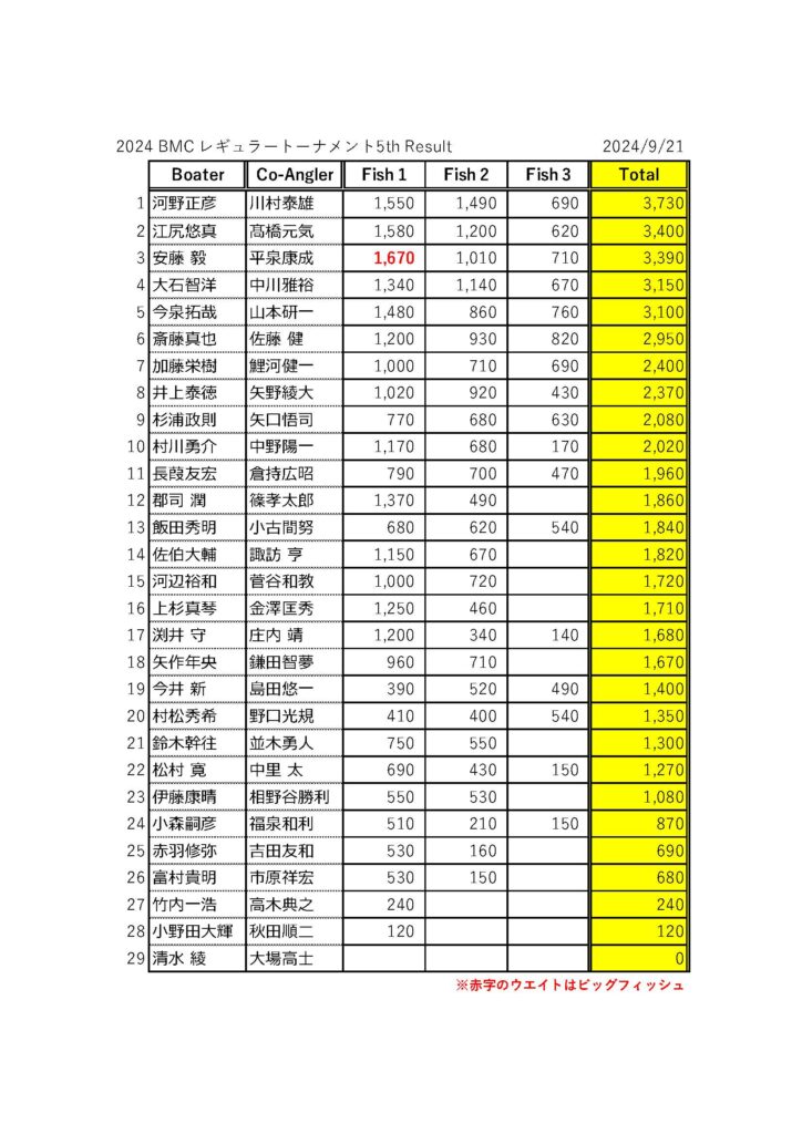 2024 BMCレギュラートーナメント5th Day1 result