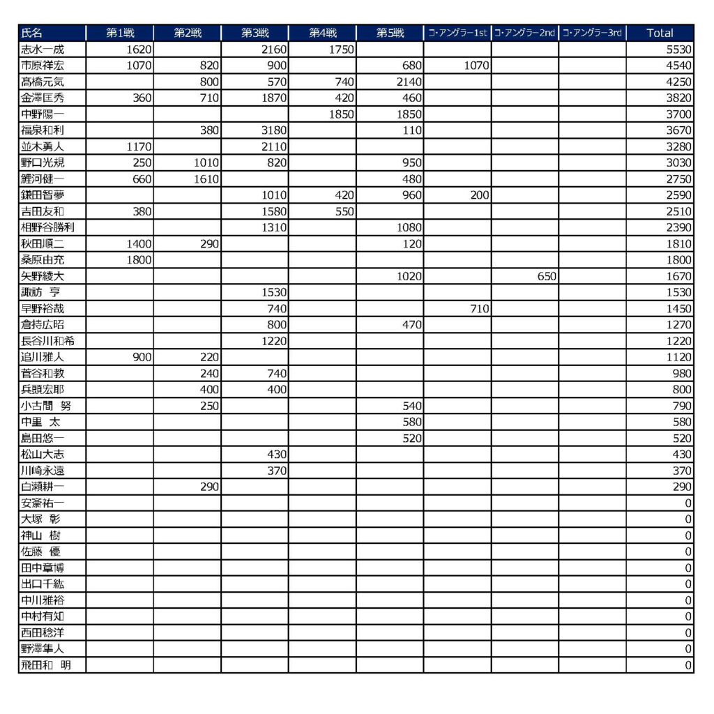 BMCレギュラートーナメント2024年間暫定ランキング(コ・アングラー)